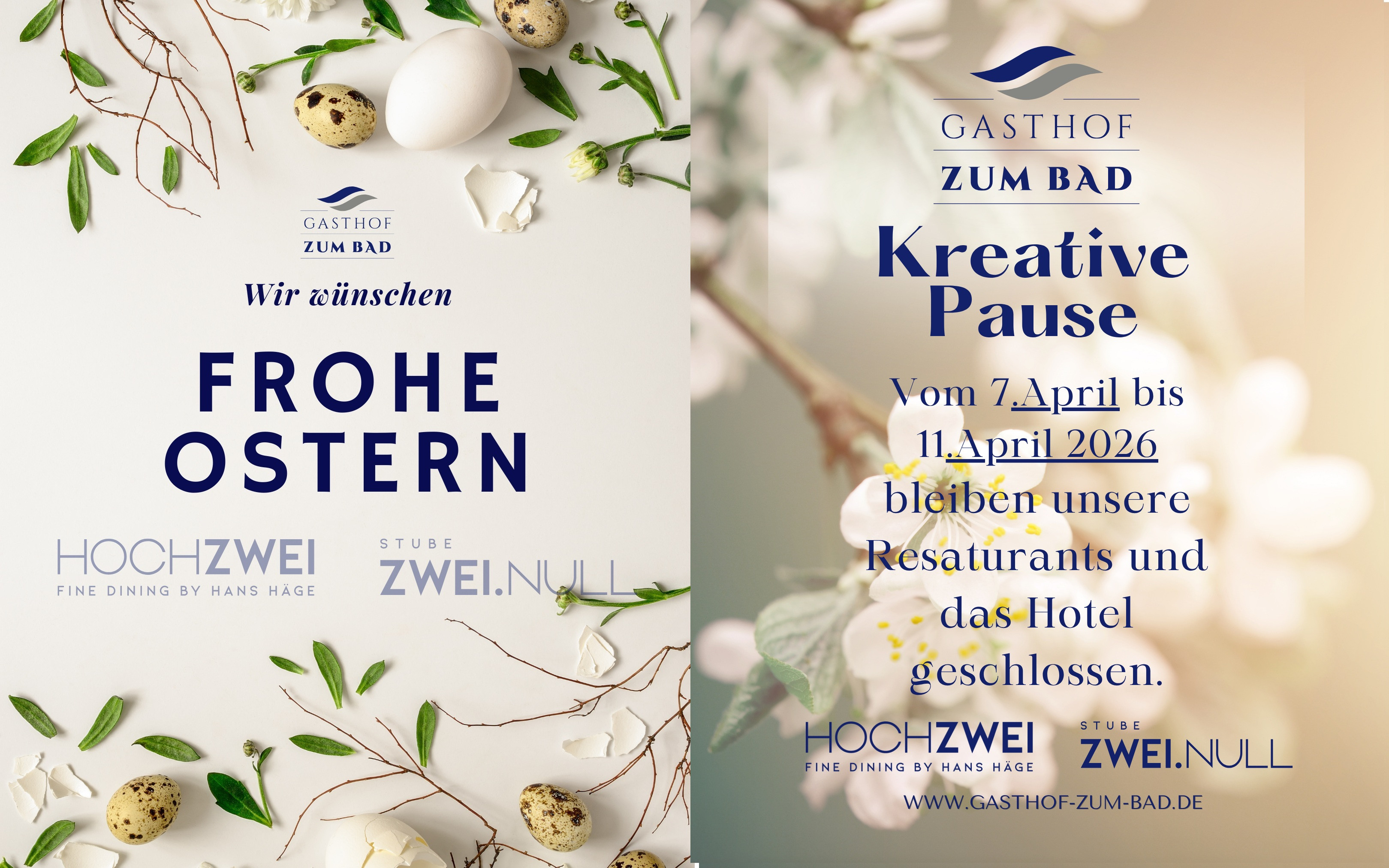 Erleben Sie Tradition und modernen Genuss im GASTHOF ZUM BAD. Seit 1921 steht unser Haus für echte Gastfreundschaft der Familie Häge. Aus dem kleinen Gasthaus von damals ist heute ein Hotel mit ZWEI Restaurants und einem leidenschaftlichen Team geworden, das Sie von Herzen willkommen heißt.